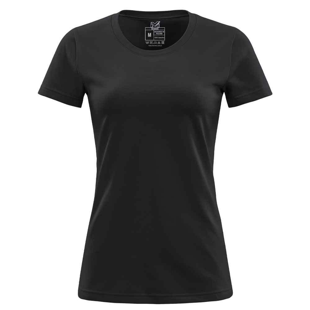 Koszulka ma lekko dopasowany, kobiecy fason, który podkreśla sylwetkę, jednocześnie gwarantując pełną swobodę ruchów. Okrągły prążkowany dekolt 1x1 oraz wzmocnione, kryte szwy przy kołnierzyku zwiększają wytrzymałość i zapobiegają rozciąganiu materiału.