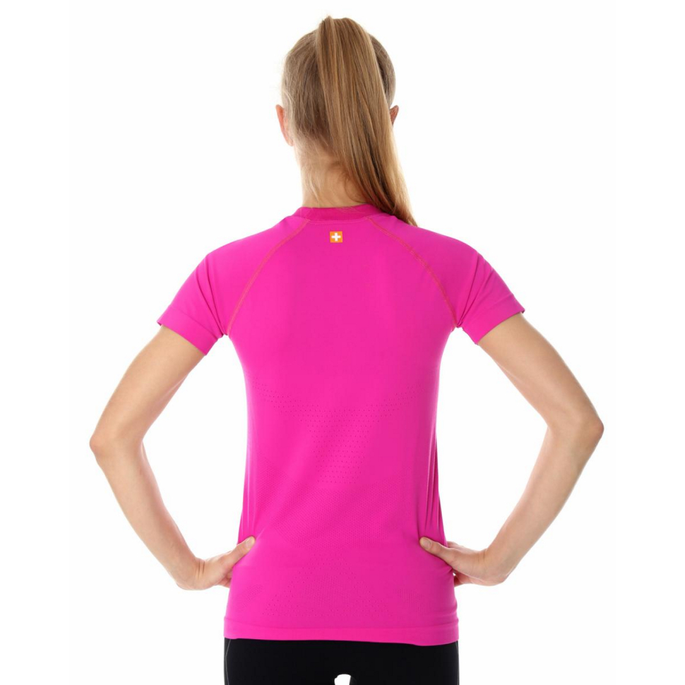 Projekt koszulki uwzględnia fizjologię kobiecej sylwetki, optymalizując przepływ powietrza tam, gdzie jest to najbardziej potrzebne: