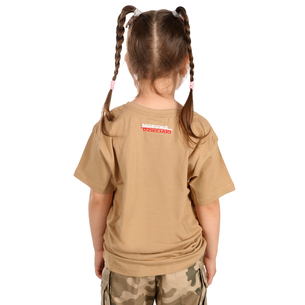 Wysokiej jakości koszulka juniorska w kolorze beżowym, ozdobiona grafiką przedstawiającą sylwetkę legendarnego wielozadaniowego pojazdu kołowego Humvee. To idealna propozycja dla młodych fanów nowoczesnej techniki wojskowej, off-roadu oraz militariów, którzy szukają trwałego i wygodnego ubrania z charakterem.