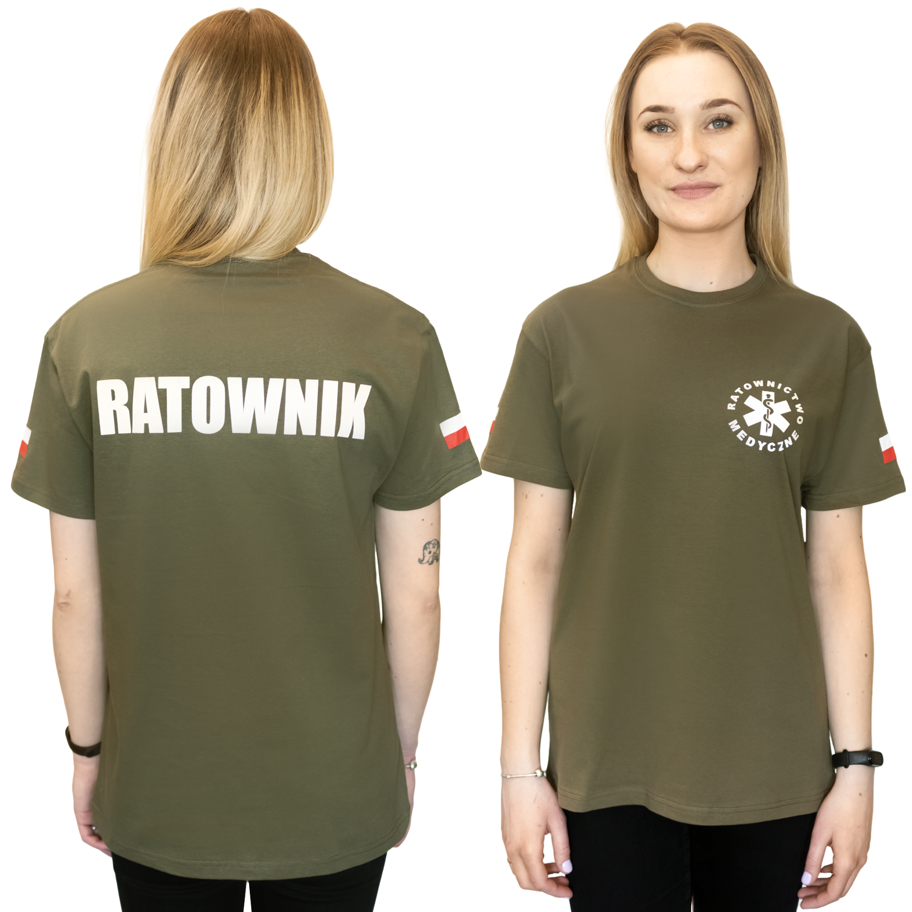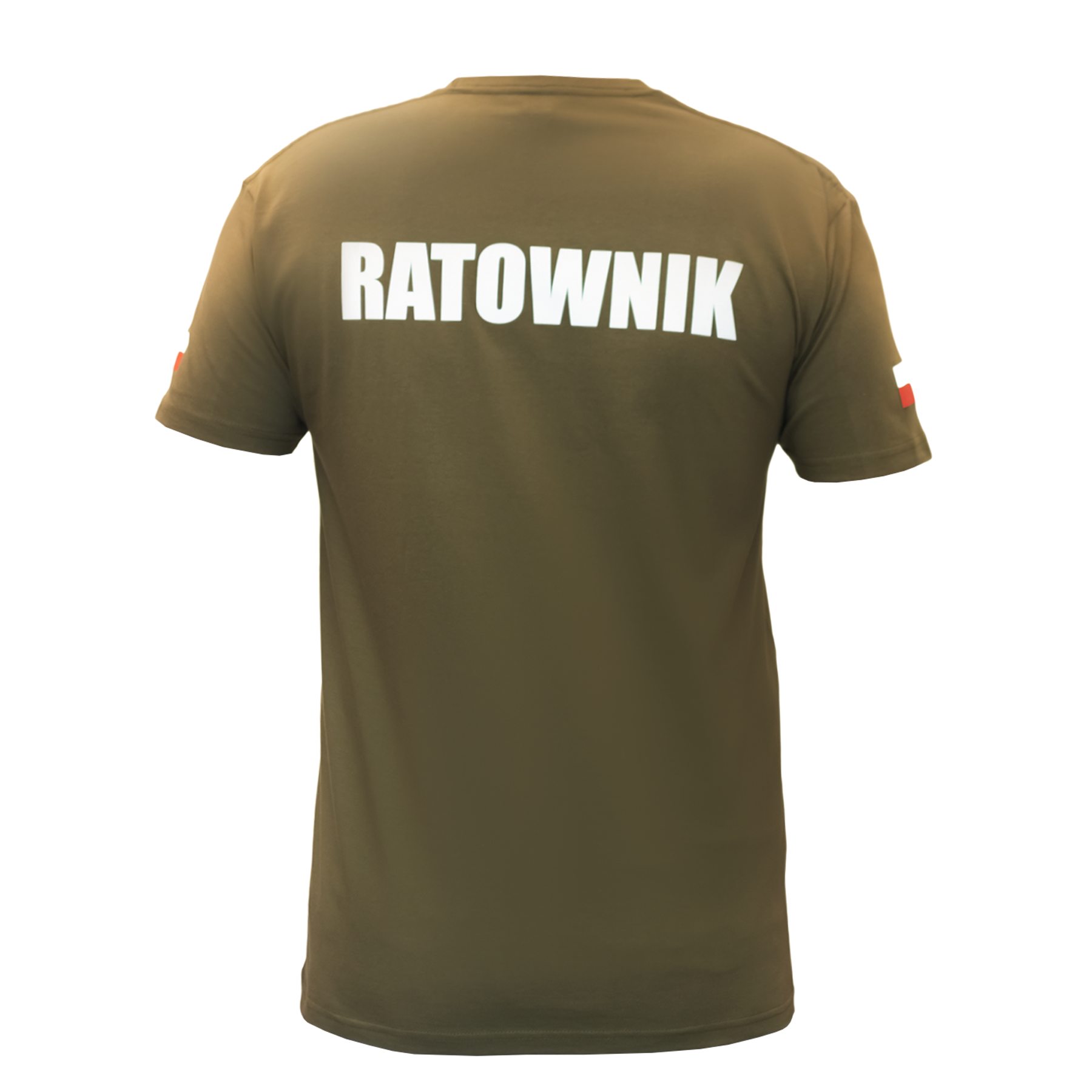 Koszulka posiada napis RATOWNIK umiejscowiony na plecach, a także logo na piersi. Na ramionach zostały również wydrukowane dwie flagi Polski. Nadruk nałożony jest technologią sitodruku, gwarantującą trwałość produktu.