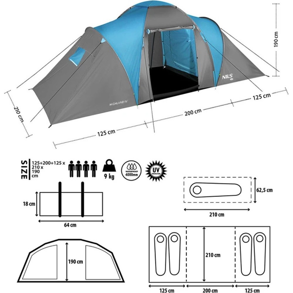 Namiot NILS CAMP NC6431 Highland IV to idealny wybór dla miłośników biwaków, kempingu i weekendowych wypadów nad jezioro. Ta kompaktowa wersja modelu NC6031 Highland mieści 4 osoby i zapewnia komfort dzięki dwóm niezależnym, dwuosobowym sypialniom oraz przestronnemu przedsionkowi z podłogą, w którym można spędzać czas podczas deszczu lub przechowywać sprzęt campingowy.