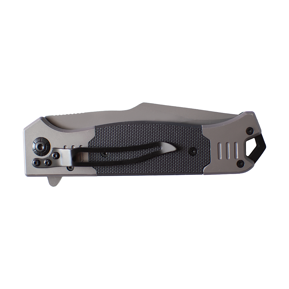 Klips Mocujący: Funkcjonalny sprężysty klips pozwala na bezpieczne i dyskretne przenoszenie noża przy pasie, krawędzi kieszeni lub w oporządzeniu taktycznym.