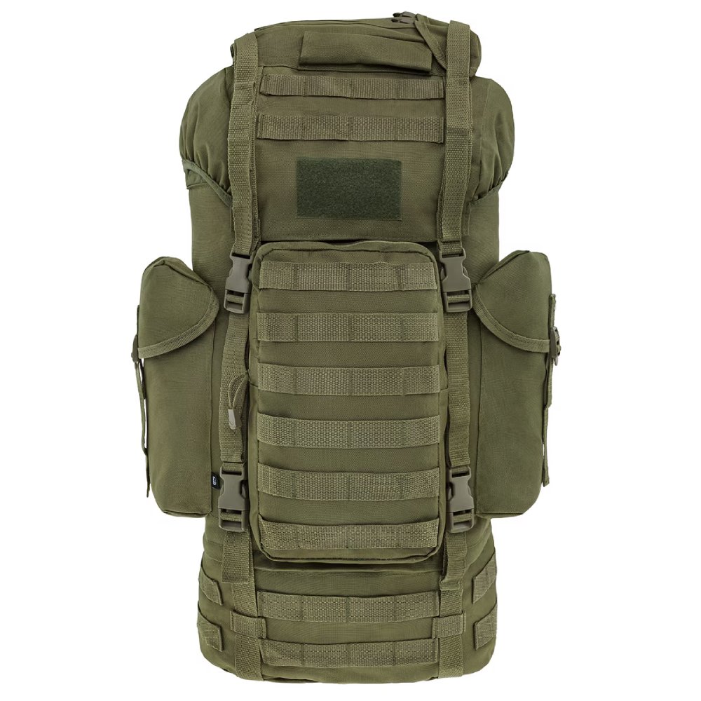 Brandit Kampfrucksack Combat MOLLE Olive to solidny, 65-litrowy plecak w wojskowym stylu, zaprojektowany do długich wypraw, survivalu, biwaków i zastosowań taktycznych. Klasyczny oliwkowy kolor nadaje mu uniwersalny, militarny charakter, który sprawdzi się zarówno w terenie, jak i w codziennym użytkowaniu.