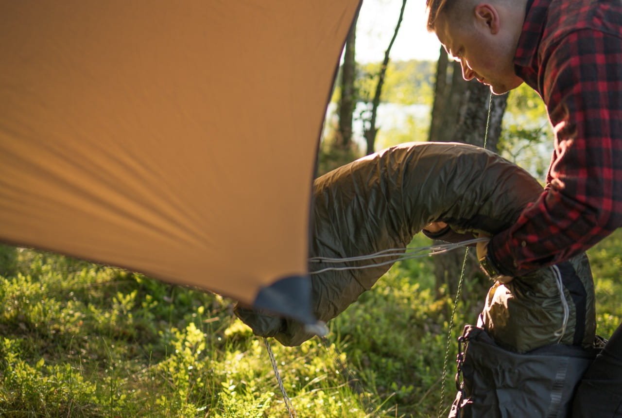 LARVA to innowacyjny pokrowiec typu „skin”, który rewolucjonizuje sposób rozkładania i zwijania obozowiska hamakowego. Pozwala na przechowywanie całego zestawu – hamaka, podpinki (np. OTUL), śpiwora oraz systemów zawieszenia – w jednym zintegrowanym rękawie. Dzięki temu przygotowanie noclegu staje się błyskawiczne, a Ty unikasz zarządzania wieloma osobnymi woreczkami.
