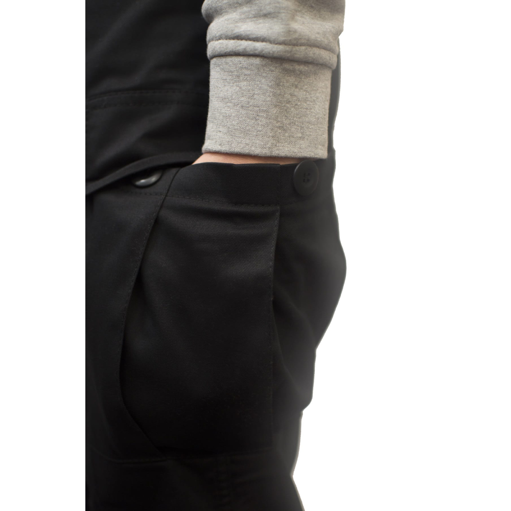 • Dwie obszerne kieszenie cargo na bokach ud, zamykane na guziki.